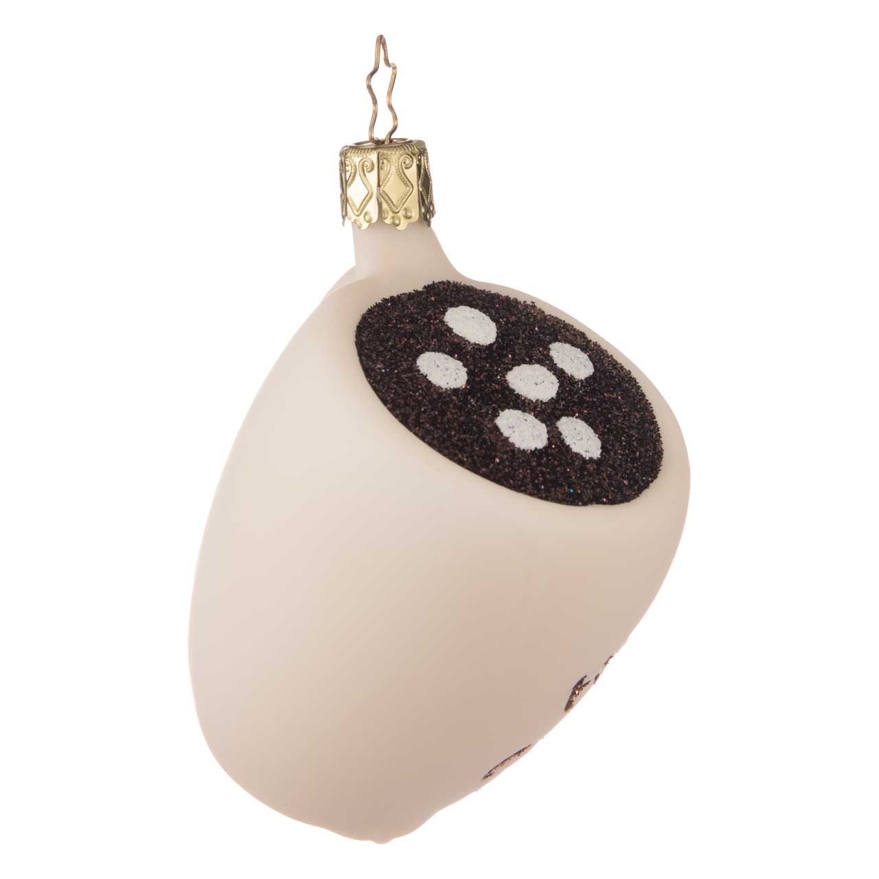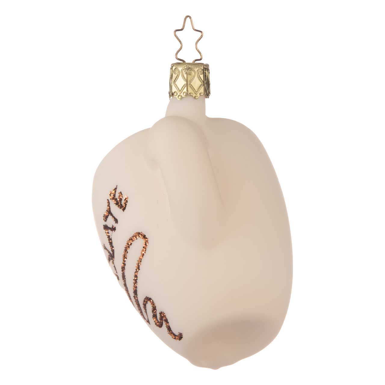 Figura en forma de taza de color beige con asa, decorada con la inscripción "Hot Chocolate" en marrón y detalles brillantes. La parte superior tiene un toque de chocolate con puntos blancos que recuerdan a los malvaviscos: una pieza diseñada con cariño en beige, marrón y blanco.