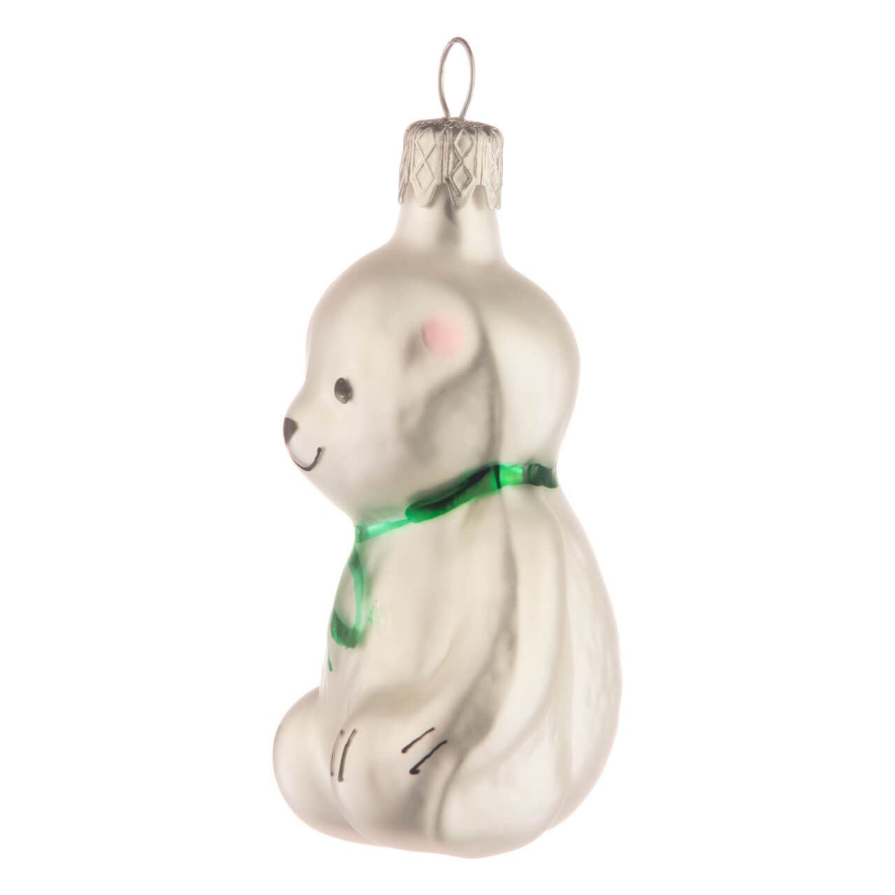 Para coleccionistas de osos y amigos de peluche: aquí tienes un nuevo tesoro para tu árbol. Pequeño y delicado, pero con detalles cariñosos y sobre todo intrincados, este osito es totalmente de cristal y cuelga acogedoramente de su corona plateada.