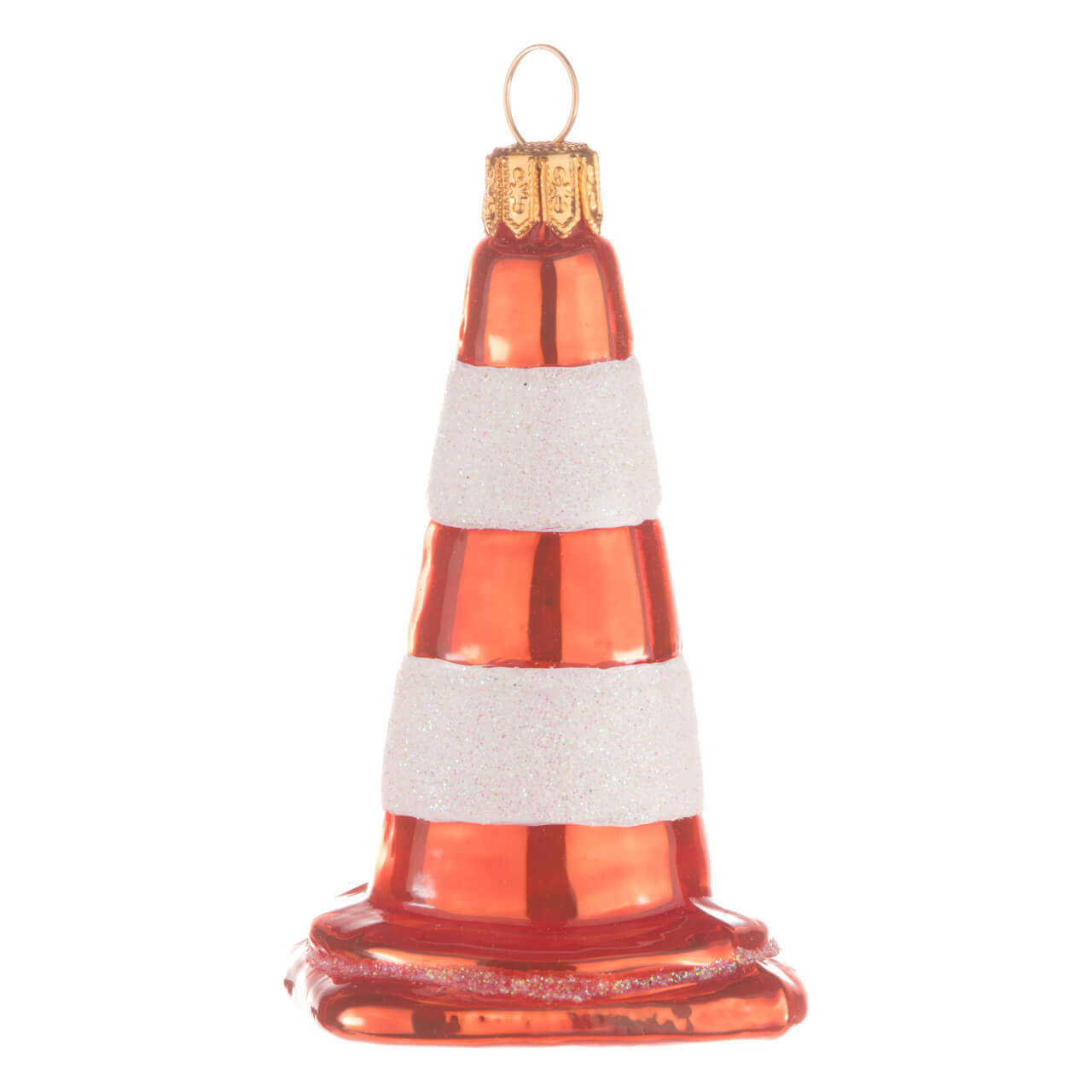 Por su armoniosa forma, con la que también llama la atención como figura navideña en el árbol de Navidad? Ciertamente, no se ve fuera de lugar en el verdor del abeto, incluso si es inusual. Al fin y al cabo, de la corona dorada cuelga un accesorio de obra, pero se ha vestido de gala. El cuerpo de goma de vidrio brilla en un festivo color naranja y está adornado con dos anchas banderolas blancas brillantes. Una línea de purpurina transparente adorna también un contorno en la base.