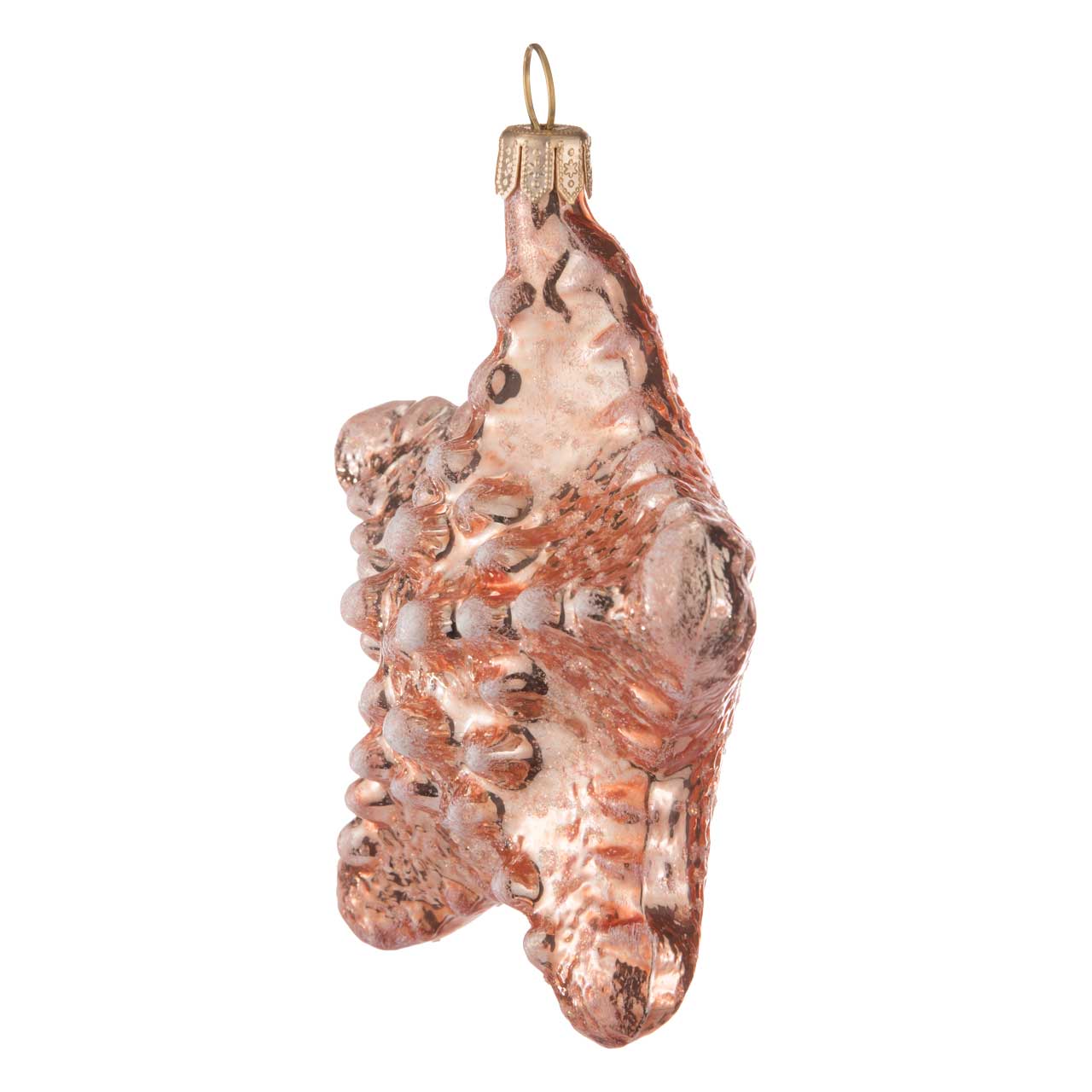 Y este ejemplar de cristal parece haberse vestido especialmente para la ocasión. El característico cuerpo de cinco puntas del animal brilla en un elegante color rosa. Puntos blancos de purpurina de diferentes tamaños marcan las púas y el dorso también ha sido embadurnado con gran atención al detalle