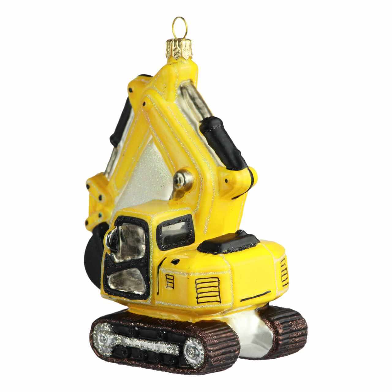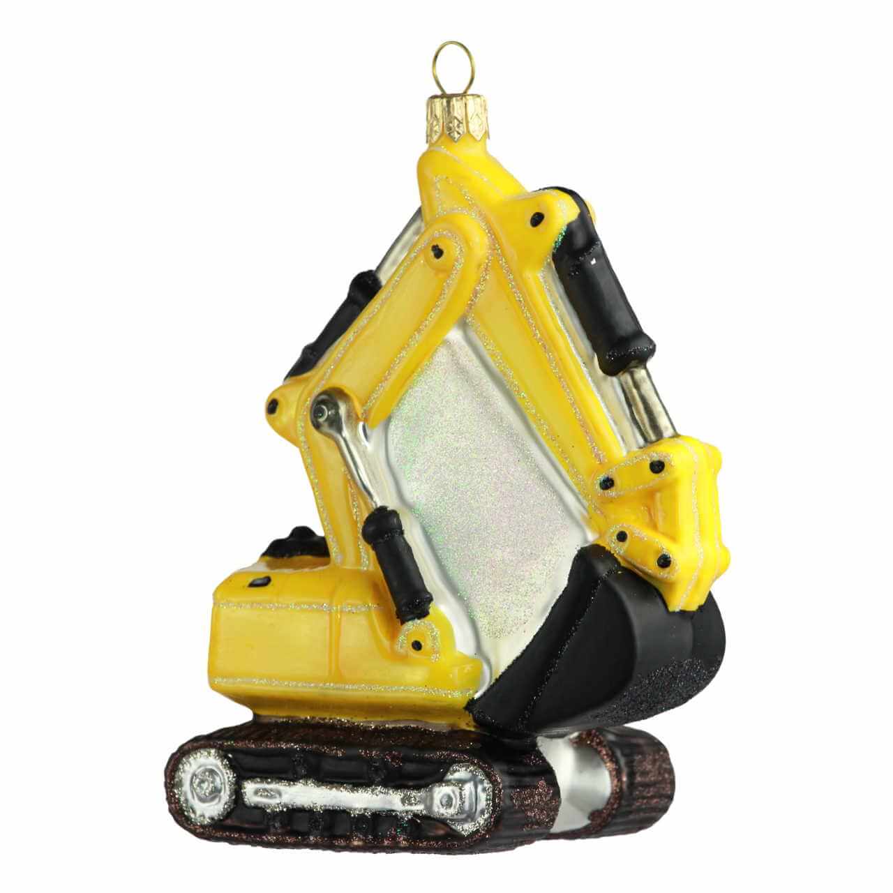 Sí, ¡simplemente hay que hacer ojos! Realmente existe, la excavadora para el árbol de Navidad. De color amarillo brillante y resplandeciente, viene con elementos negros, en parte mates, y adornos plateados que brillan con delicadeza.