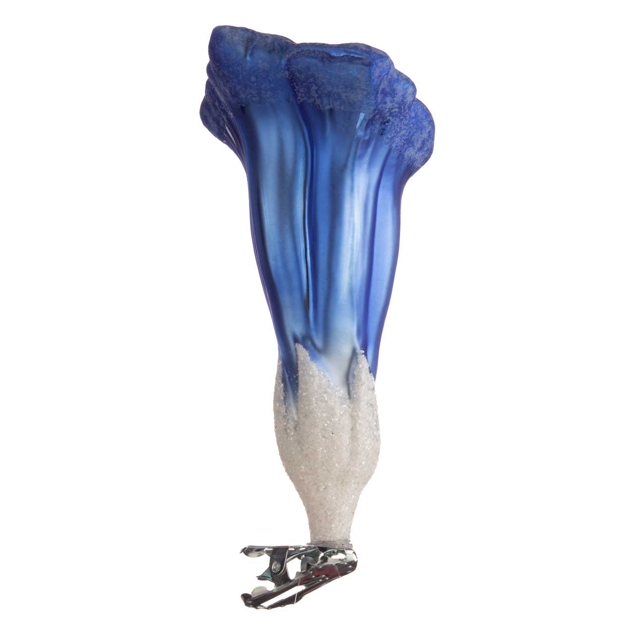 Esta representación muestra una estilizada flor de genciana de color azul intenso, con el cáliz suavemente abierto hacia fuera. El tallo es de un blanco resplandeciente, cubierto de una fina mica que recuerda a la nieve fresca. Una forma elegante y natural en un armonioso degradado de color que va del blanco nieve al azul alpino: sencilla, elegante y llena de gracia natural.