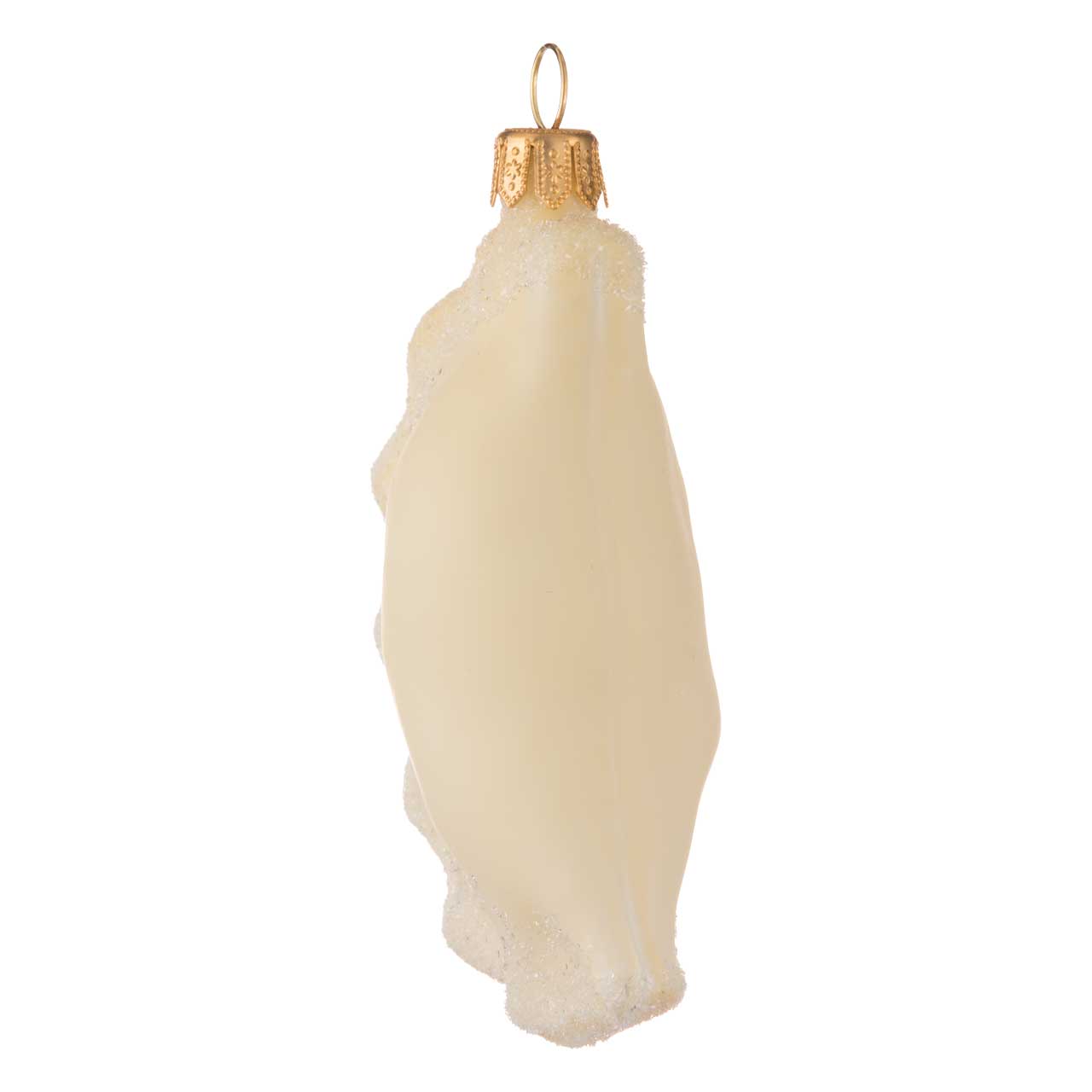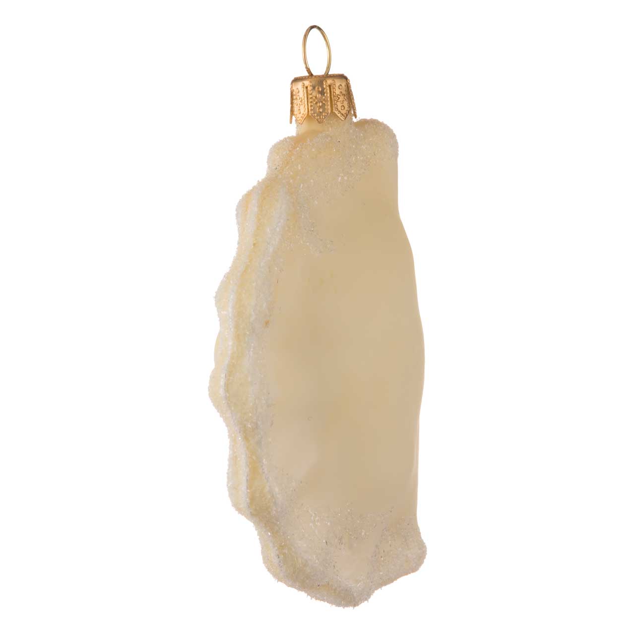 ¡Basta! Con este espléndido ejemplar, también podrá disfrutar de su amor por la pasta en Nochebuena, y probablemente se ganará muchas sonrisas de cariño al mismo tiempo. La pasta en forma de media luna para el árbol de Navidad es demasiado bonita, demasiado sabrosa y demasiado inusual. Cuelga de su corona dorada con la típica forma abombada, color crema o más bien color pasta. El borde, que parece presionado con los dedos, está decorado festivamente con polvo de purpurina de color claro.