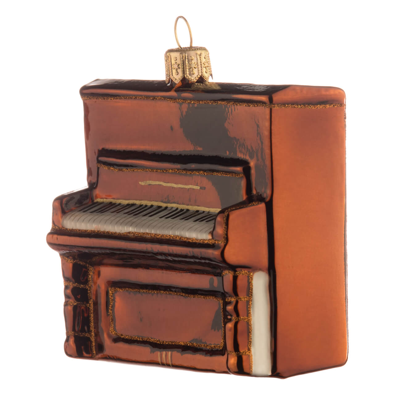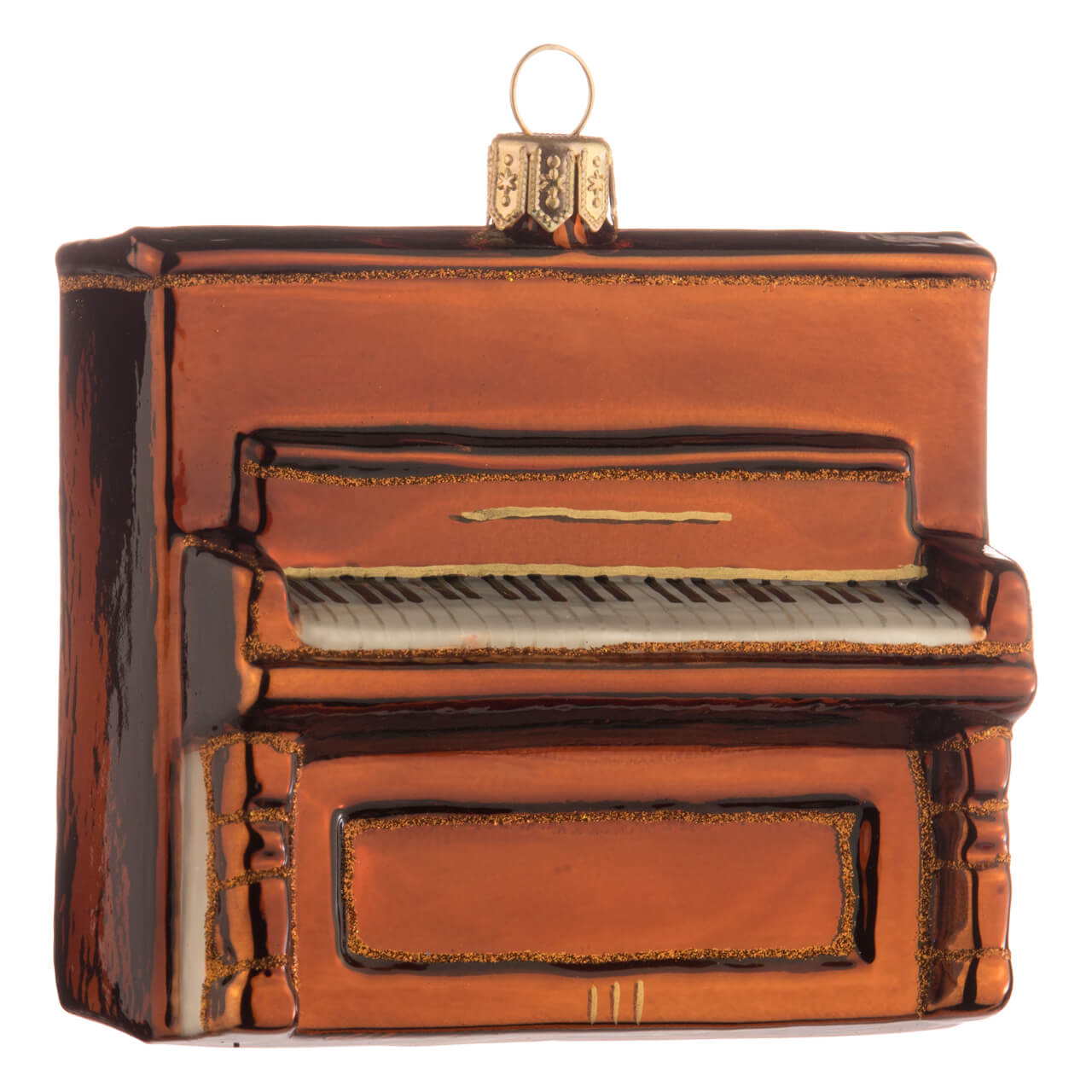 Las teclas blancas y negras del teclado están delicadamente dibujadas y reproducen cuidadosamente las octavas. Y la caja de resonancia, es decir, la parte trasera del piano, también destila una elegancia absoluta: brilla por todas partes con purpurina negra o marrón, tan festivamente como los delicados contornos aplicados a mano de la tapa, las patas y la base. Con sólo mirarlo, uno cree oír suaves sonidos en los oídos...