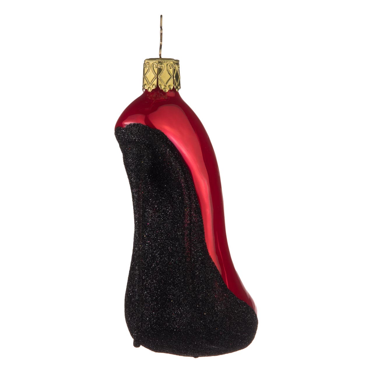 Alto, más alto, más alto. Eso es probablemente lo que pasa por tu mente cuando descubres este magnífico zapato en el árbol de Navidad. ¿Es posible caminar con un tacón tan alto? No se preocupe Al fin y al cabo, esta pieza artística no está hecha para el asfalto, sino para el árbol de Navidad.