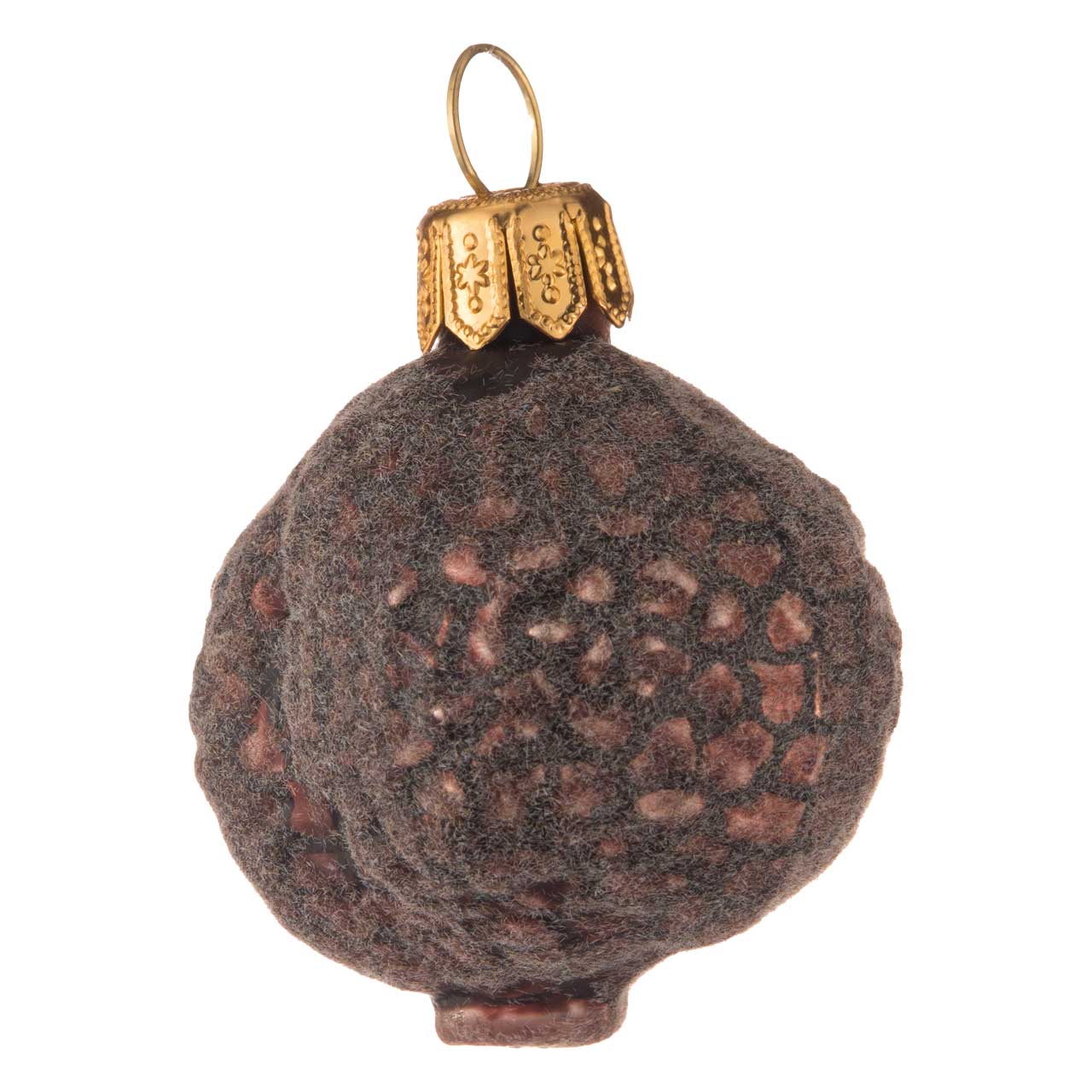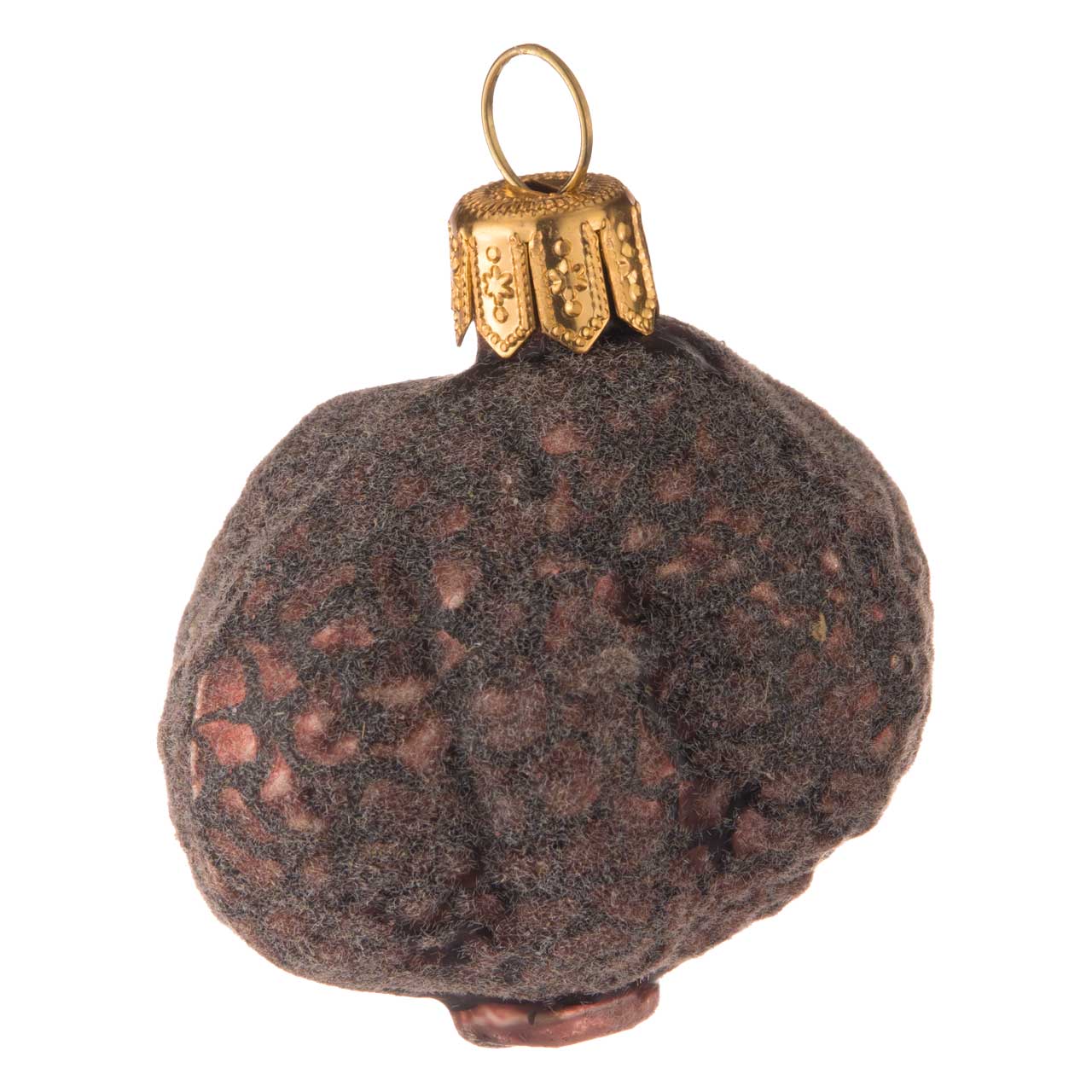 La figura del árbol de Navidad tiene un aspecto tan poco espectacular como la propia trufa. La superficie del tubérculo marrón oscuro está cubierta de una fina red de líneas negras. La superficie está ligeramente flocada y brilla mate como una seta de verdad. Sólo la falta de olor impide que el objeto se convierta en el objeto de deseo de todo perro trufero.