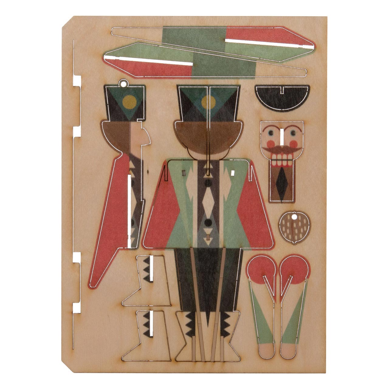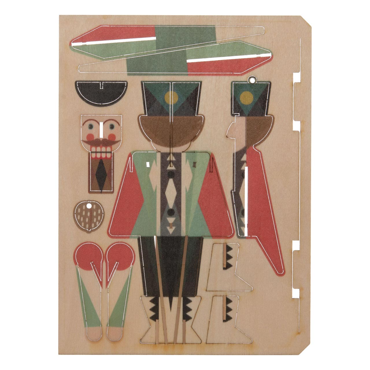 En este caso: un majestuoso cascanueces que puede colgarse de un fino hilo o simplemente colocarse sobre sus botas para decorar una ventana, una lámpara, una mesa o una estantería, por ejemplo. Y por si te lo estás preguntando, también hay espacio de sobra para escribir: además de un sobre blanco, la tarjeta de madera también viene con una colorida y clásica tarjeta plegada con un motivo a juego.