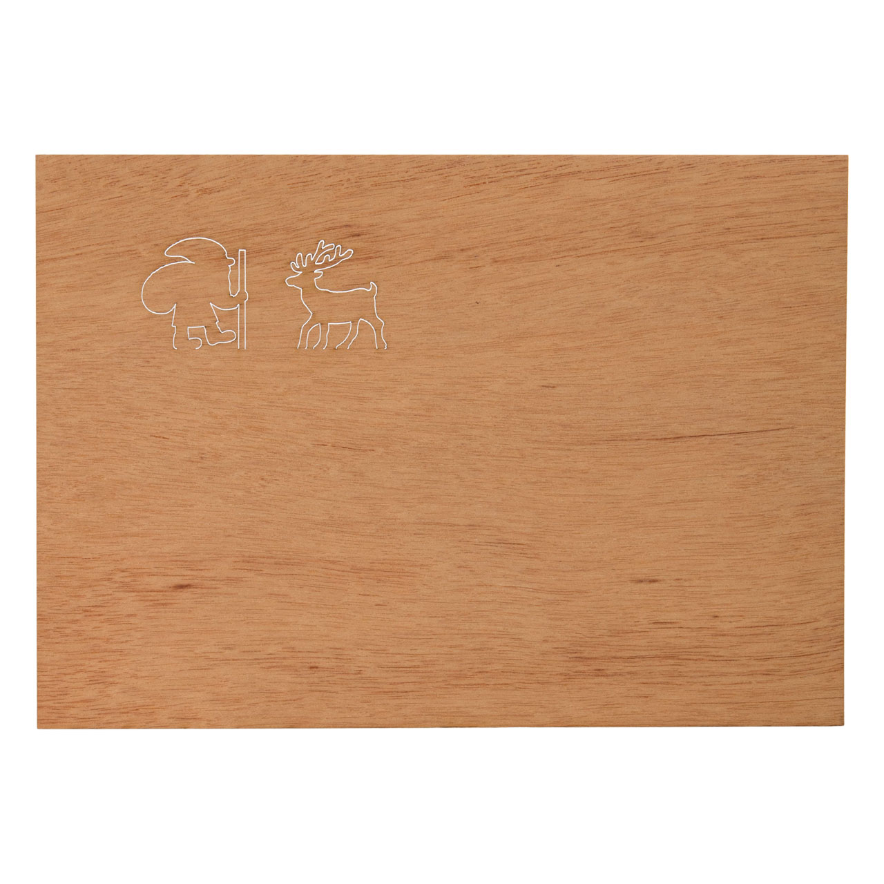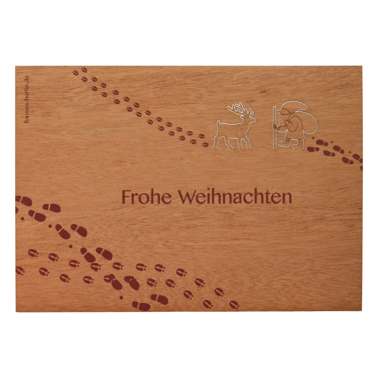 Una tarjeta fina, flexible y resistente a la vez -sólo que hecha de una chapa de madera muy especial en lugar del papel habitual-, así se presenta esta postal especial, perfecta para felicitaciones navideñas insólitas y encantadoras.